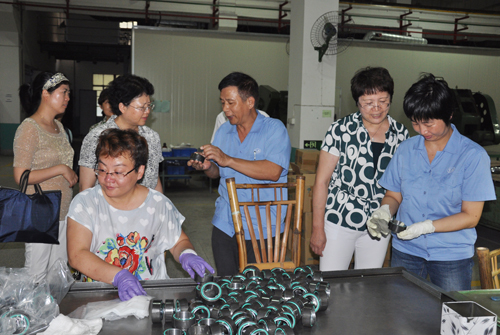 2015年8月5日下午,中華全國總工會女職工委員會常委周樂紅、倪燕芳帶領全國總工會“單獨兩孩”政策專題調(diào)研組在省總工會、市總工會相關領導陪同下到公司調(diào)研。在公司工會主席張?zhí)┥⒊崭敝飨辂惲崤阃拢{(diào)研組先深入車間一線生產(chǎn)現(xiàn)場走訪參觀,實地了解一線女職工工作環(huán)境與狀況,并同女職工親切交談,了解女職工勞動保護、特殊權益保護等相關問題。