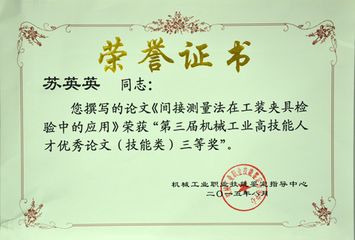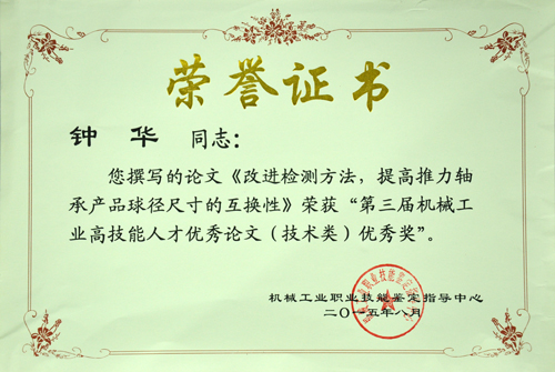 近日,第三屆機械工業(yè)高技能人才優(yōu)秀論文評選工作圓滿結束。此次評選由機械工業(yè)職業(yè)技能鑒定指導中心主辦,行業(yè)協(xié)會、企業(yè)專家組成的評審專家委員會對140余篇論文進行了專業(yè)評審。公司員工蘇英英撰寫的《間接測量法在工裝夾具檢驗中的應用》獲得技能類論文三等獎,鐘華撰寫的《改進檢查方法,提高推力軸承產(chǎn)品球徑尺寸的互換性》獲得技術類論文優(yōu)秀獎。此外,公司技能鑒定站站長洪麗玲也榮獲機械工業(yè)高技能人才培養(yǎng)優(yōu)秀組織者。