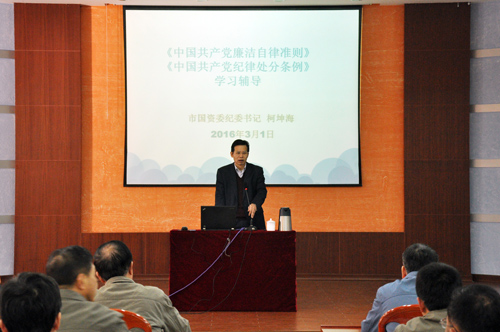 2016年3月1日下午,公司黨委書記、董事長曾凡沛在俱樂部會議室主持開展《中國共產(chǎn)黨廉潔自律準(zhǔn)則》、《中國共產(chǎn)黨紀(jì)律處分條例》(以下簡稱《準(zhǔn)則》、《條例》)專題學(xué)習(xí)活動,漳州市國資委紀(jì)委書記柯坤海受邀進行了《準(zhǔn)則》、《條例》宣講。公司總部及子公司中層以上管理人員、各黨支部委員、業(yè)務(wù)部門黨員、黨員職工代表、黨員班組長、黨員助理級以上技術(shù)管理人員等200多人參加了學(xué)習(xí)活動。
