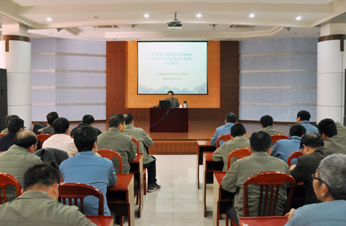 柯坤海從兩部法規(guī)修訂的背景和特點、新法規(guī)的主要內(nèi)容及如何貫徹執(zhí)行新法規(guī)三個方面對《準(zhǔn)則》、《條例》進行深入淺出的詳細解讀,并聯(lián)系黨員干部工作實際進行警示教育,使參加學(xué)習(xí)的黨員干部對《準(zhǔn)則》、《條例》有了更深刻的了解,進一步強化了黨員的身份意識及廉潔自律、忠實履職意識。