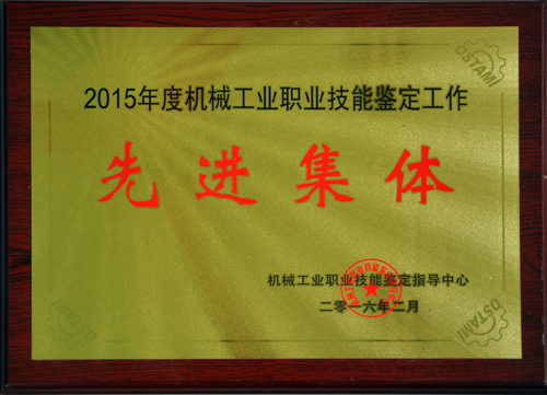公司榮獲“2015年度機械工業職業技能鑒定工作先進集體”稱號
