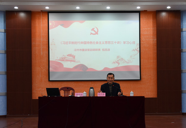 為進(jìn)一步興起習(xí)近平新時(shí)代中國(guó)特色社會(huì)主義思想 “大學(xué)習(xí)”熱潮,2018年12月28日晚,龍軸集團(tuán)在俱樂(lè)部會(huì)議室組織開(kāi)展專題黨課講座。集團(tuán)黨委書(shū)記、董事長(zhǎng)曾凡沛作了題為《充分認(rèn)識(shí)政治建設(shè)是黨的建設(shè)的首要建設(shè)》專題黨課,同時(shí)邀請(qǐng)漳州市國(guó)資委副調(diào)研員倪昌源講授《<習(xí)近平新時(shí)代中國(guó)特色社會(huì)主義思想>三十講學(xué)習(xí)心得》。集團(tuán)高管、各黨總支、黨支部書(shū)記及支委、中層以上管理人員共130余人參加了黨課學(xué)習(xí)。