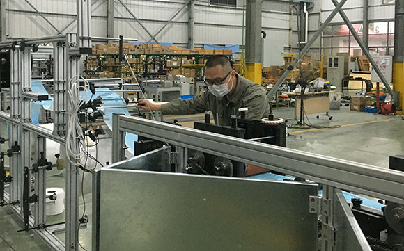 2020年2月7日以來(lái),新型冠狀病毒感染肺炎疫情防控進(jìn)入關(guān)鍵階段,公司積極響應(yīng)漳州市委、市政府千方百計(jì)提升防護(hù)物資產(chǎn)能的號(hào)召,聯(lián)手福建明鑫智能科技股份有限公司聯(lián)合研發(fā)日產(chǎn)10萬(wàn)個(gè)醫(yī)用口罩生產(chǎn)線。在研制團(tuán)隊(duì)的努力下,2月17日即完成生產(chǎn)線組裝,2月27日完成8條生產(chǎn)線調(diào)試,有效解決醫(yī)用口罩生產(chǎn)線“一機(jī)難求”的難題。
