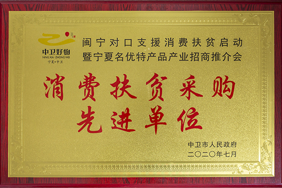由于在消費扶貧工作中表現突出,寧夏中衛市政府向公司授予了“消費扶貧采購先進單位”稱號。