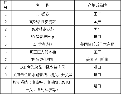 2.1.1基本工況要求:所需超純水機將在實驗室使用,滿足GB6682-2008標準的一級水和三級水的兩種類型水質。