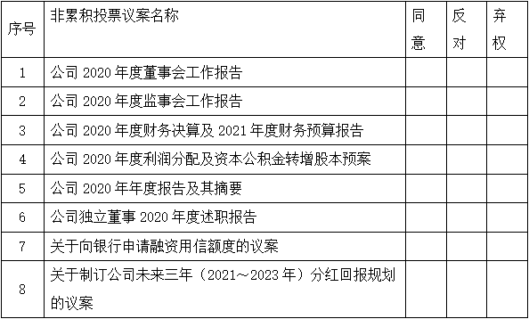 茲委托        先生(女士)代表本單位(或本人)出席2021年4月29日召開的貴公司2020年年度股東大會,并代為行使表決權。