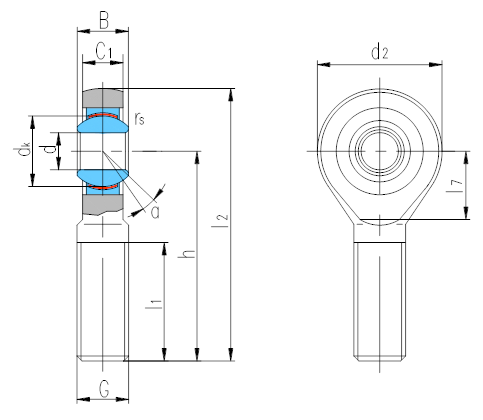 產品特點:自潤滑組裝桿端關節軸承桿端體材料是碳鋼,表面鍍鋅;外圈材料是青銅,滑動表面襯有PTFE復合材料,無需潤滑;內圈材料是軸承鋼,淬火,球面鍍硬鉻。