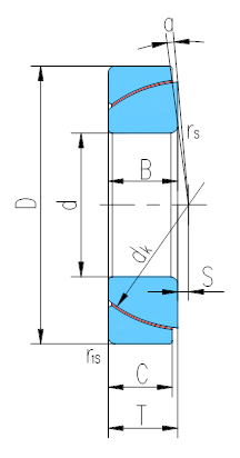 產品特點:外圈材料為軸承鋼,淬火,球面粘貼PTFE編織物;內圈材料為軸承鋼,淬火,球面鍍硬鉻。