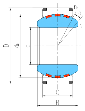 產(chǎn)品特點:外圈沿軸向剖分成兩半,用鎖圈固定,外圈材料為軸承鋼,淬火,磷化,球面鍍硬鉻;內(nèi)圈材料為銅合金,球面鑲嵌固體自潤滑材料。