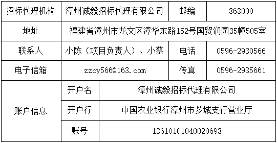 名 稱:漳州誠毅招標(biāo)代理有限公司