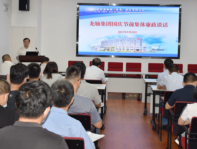 為進(jìn)一步促進(jìn)黨員領(lǐng)導(dǎo)干部廉潔自律,持續(xù)凈化良好節(jié)日風(fēng)氣,以實(shí)際行動(dòng)迎接黨的二十大勝利召開(kāi),9月29日,龍軸集團(tuán)召開(kāi)國(guó)慶節(jié)前集體廉政談話,將監(jiān)督關(guān)口前移,及時(shí)“提神補(bǔ)鈣”,擰緊廉政“發(fā)條”,筑牢廉潔第一道“防火墻”。