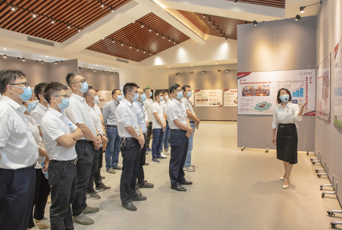 2022年11月1日,龍軸集團組織業(yè)務(wù)主辦以上干部及員工代表160余名,由集團黨委委員、常務(wù)副總經(jīng)理鄭長虹,黨委副書記劉明福,黨委委員、紀委書記、監(jiān)察專員王志劼,黨委委員、副總經(jīng)理張逸青,黨委委員、副總經(jīng)理林通靈,財務(wù)總監(jiān)曾四新,總工程師林振元帶隊,分三批前往參觀漳州市國資委主辦的“國企發(fā)展這十年成就展”。