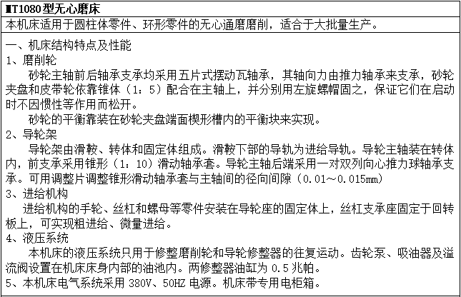 M1080無心磨床技術要求