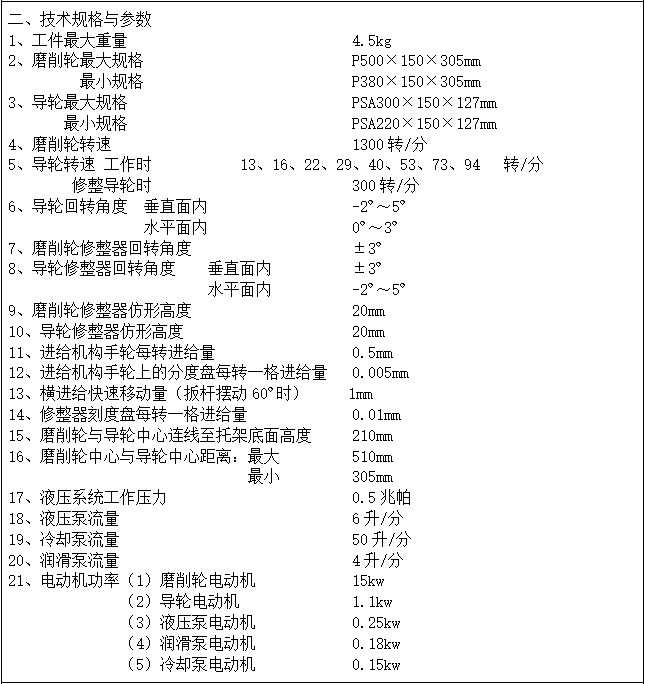 設備驗收時,根據實際生產情況,雙方協商選用其它產品型號作為驗收型號,以產品磨削精度來驗證設備加工精度,及對“主要技術參數”中的內容進行驗收