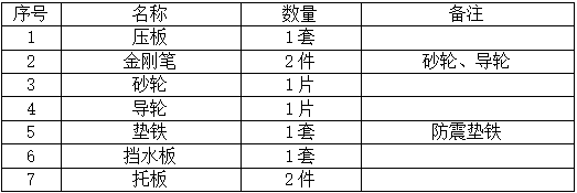 縱進給托架(磨φ5~φ80mm)、砂輪吊鉤、冷卻裝置、專用工具各一套