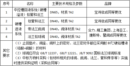 自動鍍鉻生產線現有鍍槽-中控槽鍍液循環系統塑料材質管道(管道、接頭與閥體)使用到一定年限老化,其中的溢流管路、回液管路及閥件將更新為鈦材料。