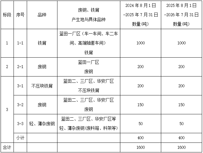 (三)項(xiàng)目內(nèi)容:福建龍溪軸承(集團(tuán))股份有限公司鐵屑、廢鋼等生產(chǎn)性廢料出售,出售總數(shù)量1600噸/年, 兩年總量約3200噸。