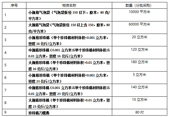 龍軸集團采購氣泡袋、珍珠棉招標公告