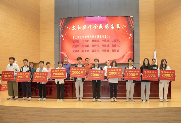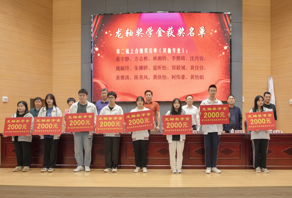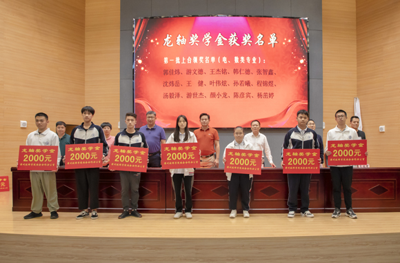 2021年11月2日下午,2020─2021學年“龍軸獎學金”頒獎儀式在漳州技師學院報告廳舉行。公司黨委副書記劉明福、人力資源部副部長劉鑫財出席了頒獎儀式,并與漳州技師學院院長詹百靈等校方領導一起為30名獲獎學生頒發榮譽證書和每人2000元的獎學金。