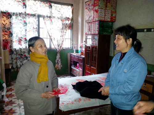 啟動儀式后,公司義工代表隊作為活動的第10支義工隊伍,在新橋社區(qū)工作人員帶領(lǐng)下,將愛心傳遞到了位于前鋒新村、南太武、新橋等地的5戶低保戶人員家中。義工代表們親切的笑臉,熱情的慰問為連日來的低溫帶來濃濃的暖意。
