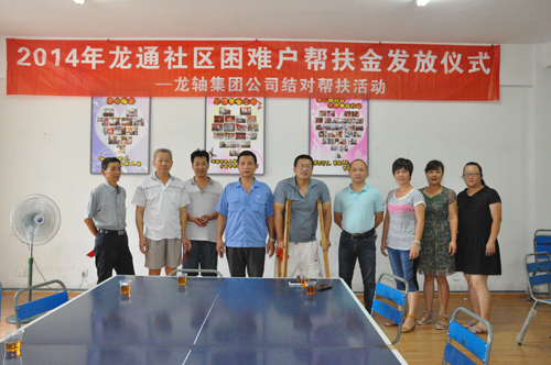 2014年8月8日,公司與薌城區(qū)南坑街道龍通居委會聯(lián)合舉行了“2014年幫扶特困戶幫扶金發(fā)放儀式”。 公司黨委副書記張?zhí)┥跁显俅蜗?012年結(jié)對幫扶的5戶龍通社區(qū)困難戶各發(fā)放了3000元的幫扶金,并和他們進行了親切座談。面對受助人員溢于言表的感謝之辭,張?zhí)┥硎荆骸白鳛楦=ㄊ∥拿鲉挝?,帶頭開展社會公益事業(yè)是義不容辭的責任。希望你們的生活能有所改善,同時,也希望通過這樣的行動,積極傳播扶危濟困的中華民族傳統(tǒng)美德,讓更多需要幫助的人得到社會關(guān)懷!”
