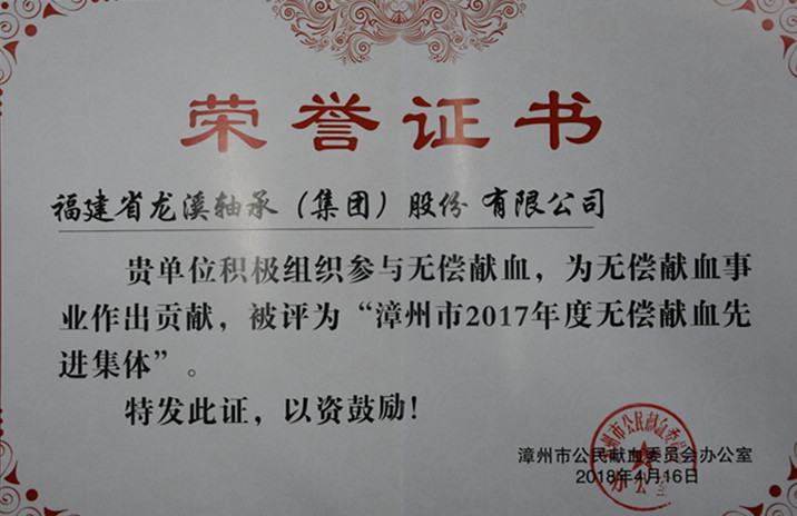 2016年以來,公司積極組織廣大員工無償獻血,兩年來無償獻血701人次(占職工總數的28.7%),總獻血量140200ml。為表彰我司為無償獻血事業做出的積極貢獻,漳州市公民獻血委員會辦公室授予公司“漳州市2017年度無償獻血先進集體”稱號,同時授予楊小杰、李福輝“漳州市2017年度無償獻血個人促進獎”。這次表彰是對公司熱心推動公益事業、積極履行社會責任的充分肯定。