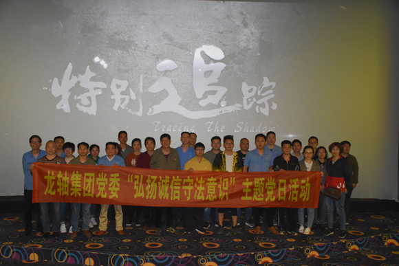 為認(rèn)真貫徹落實習(xí)近平總書記在中央全面依法治國委員會第一次會議上提出“要建設(shè)社會主義法治文化”,加強法治宣傳教育的系列要求,2019年3月29日,龍軸集團(tuán)黨委開展“弘揚誠信守法意識”主題黨日活動,組織60名黨員在大地電影城觀看影片《特別追蹤》。