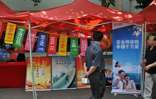 按照《漳州市人民政府安全生產(chǎn)委員會(huì)辦公室關(guān)于做好安全生產(chǎn)宣傳咨詢?nèi)栈顒?dòng)的通知》精神,6月9日早上,我公司代表國資系統(tǒng)參加漳州市2013年安全生產(chǎn)宣傳咨詢?nèi)栈顒?dòng),在市區(qū)延安北路繁華路段設(shè)置咨詢點(diǎn),舉行安全生產(chǎn)知識(shí)咨詢活動(dòng)。主要活動(dòng)內(nèi)容有:分發(fā)安全生產(chǎn)宣傳資料;安全生產(chǎn)知識(shí)咨詢;謎語競猜;安全月主題展等。