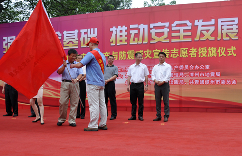 今年5月份是全市第二個(gè)防震減災(zāi)宣傳月,6月份是全國第十二個(gè)“安全生產(chǎn)月”。6月13日上午,公司黨委副書記張?zhí)┥鷰ьI(lǐng)15名安全生產(chǎn)志愿者代表國資系統(tǒng)參加漳州市2013年安全生產(chǎn)與防震減災(zāi)宣傳志愿者授旗儀式
