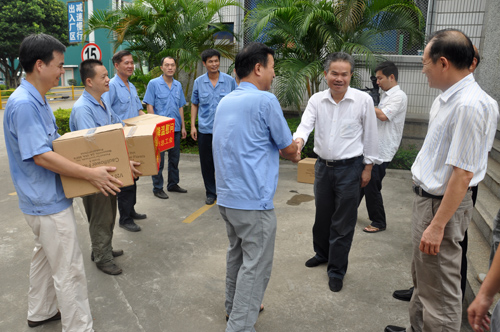 2013年7月2日上午,市委常務(wù)、市總工會(huì)主席張禎錦一行在公司工會(huì)主席張?zhí)┥⒊?wù)副主席洪麗玲的陪同下,到我司藍(lán)田廠區(qū)看望、慰問高溫酷暑堅(jiān)持奮戰(zhàn)在一線的廣大職工,為他們送去防暑降溫用品。市領(lǐng)導(dǎo)在了解了我司的生產(chǎn)情況及公司在保證員工安全健康的前提下,采取的一系列防暑降溫措施后,對(duì)我司表示肯定,并希望我司能夠繼續(xù)采取有效措施,合理安排工作時(shí)間,進(jìn)一步改善職工工作環(huán)境和條件,把防暑降溫工作做得更好。