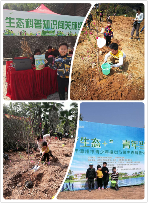 2018年 3月10日上午,公司團委帶著9組家庭來到漳州市龍文區郭坑鎮東溪農場,參加由漳州團市委主辦、市直團工委協辦的2018年漳州市青少年植樹節暨生態科普體驗活動,活動中有生態科普知識游園闖關和植樹等親子活動。生態科普知識游園活動現場氣氛活躍,大家相互競答,到處都是歡聲笑語;植樹環節時,寶貝們在家長的陪同下一起動手挖坑、松土、種樹、澆水,認真細致地做好每一個步驟,環保小衛士的認真勁兒讓人深感欣慰。