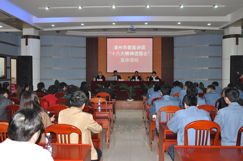 6、2013年1月31日,組織公司高管、部分中層主管36人參加市委宣傳部、市國資委組織的“黨的十八大宣講團”到公司舉行“十八大進企業(yè)”活動。