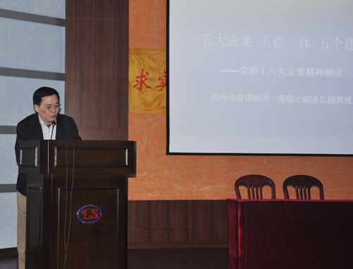 3、2012年12月18日,組織集團公司高管、中層主管、子公司高管94人參加“深入學習貫徹黨的十八大精神專題講座”,由市委宣傳部講師團副團長黃瑞土主講。