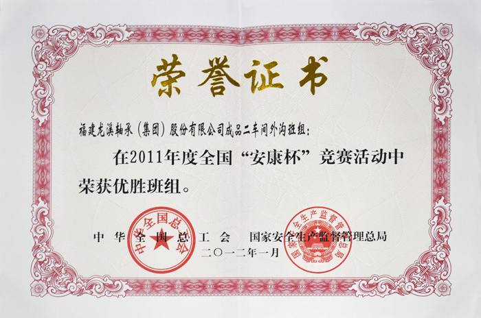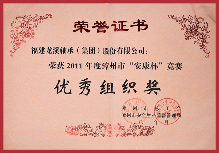 2012漳州年市安康杯優(yōu)秀組織獎