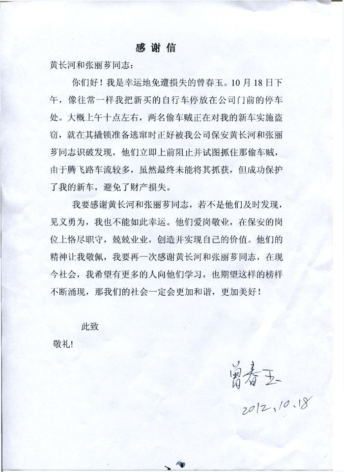 見義勇為感謝信